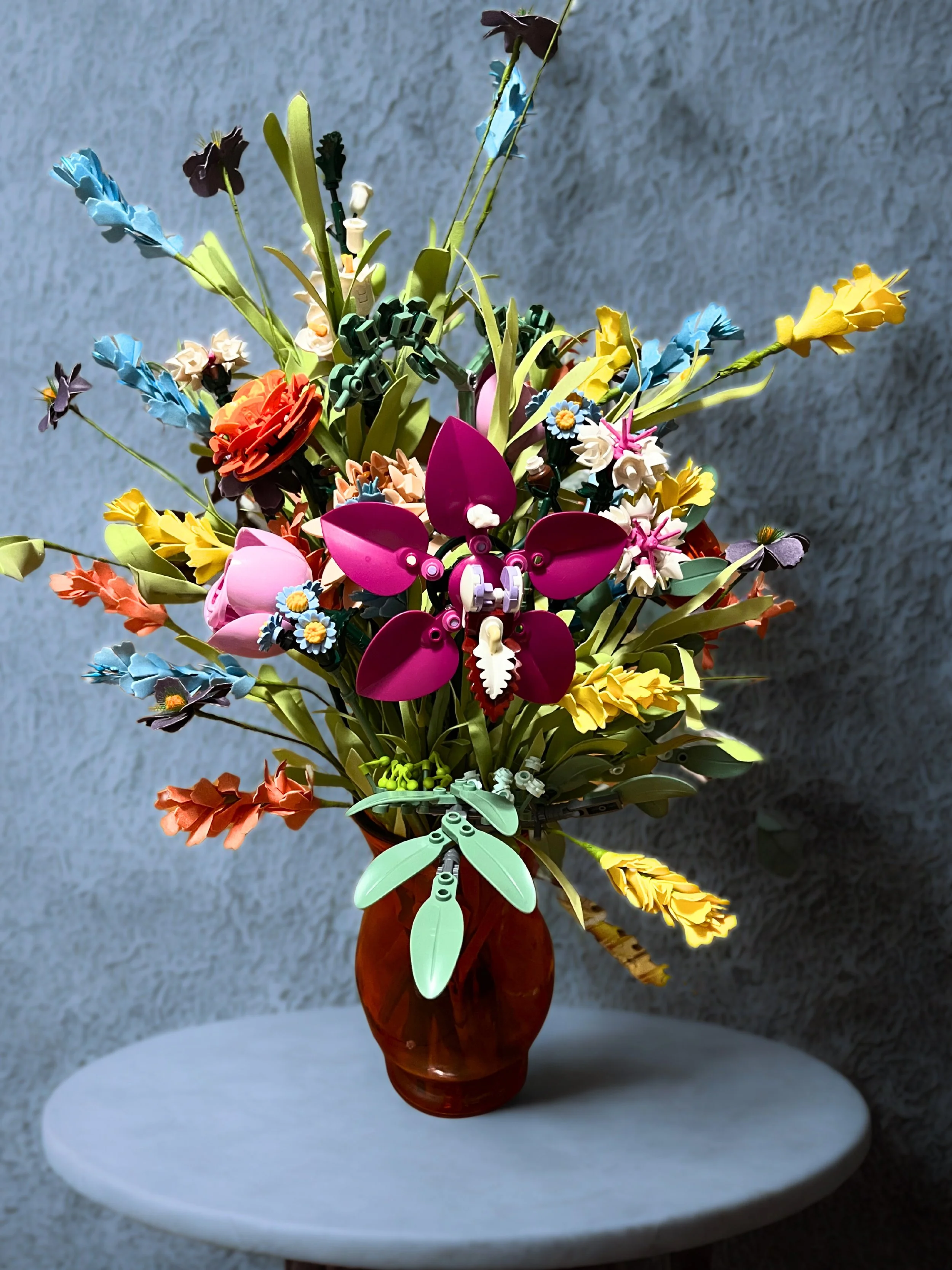 A playful-meets-pretty arrangement where LEGO flowers and silk stems come together for a burst of color, texture, and creativity.